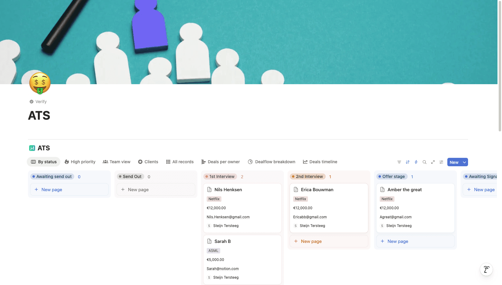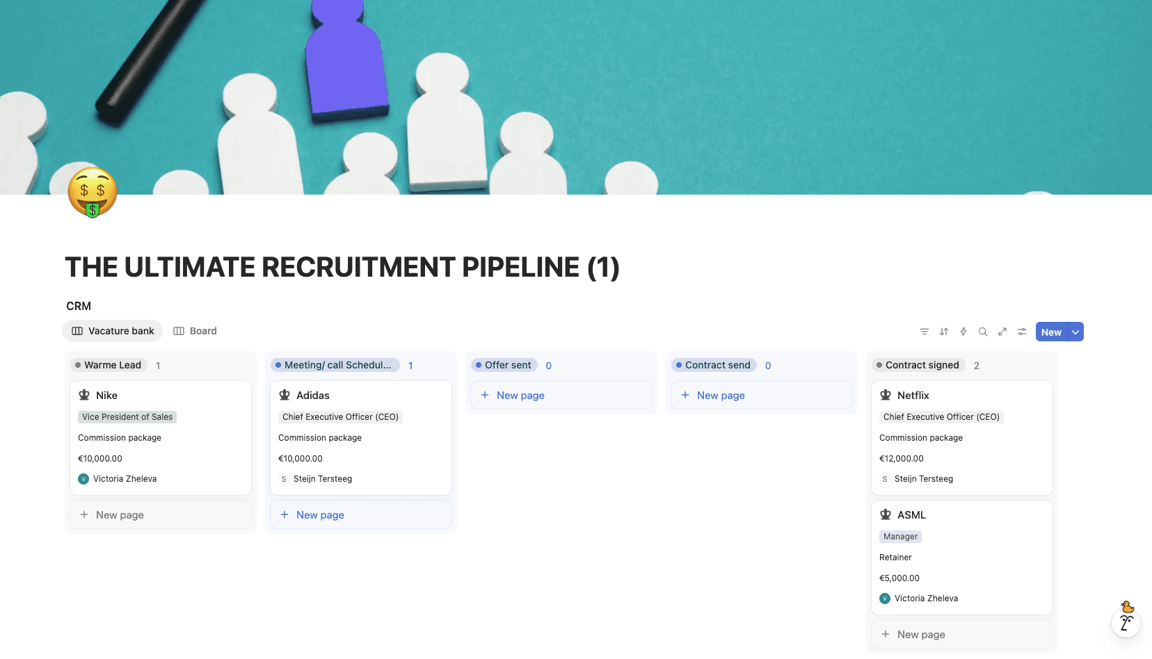 A pipeline with CRM, ATS, Current vacancy tracker, Old candidate tracker + more